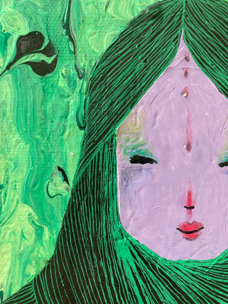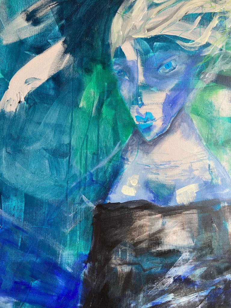 Tavlan som är lämnad idag har en känsla att en sjöjungfru eller någon form av vattenväsen i alla fall. Jag är öppen för att det utvecklas till precis vad det vill. Jag älskar att låta fantasin skena iväg.